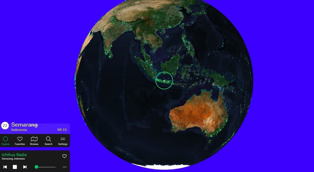“O site gratuito, também disponível como aplicativo, transmite transmissões de estações de rádio do mundo todo em uma página que exibe um globo terrestre”, diz o artigo de Sebastian Modak para o WSJ. “Conforme você clica e arrasta pelo planeta, pequenos pontos verdes indicam as diferentes estações. Em uma única sessão, você pode ouvir um conjunto tradicional de gamelão em Yogyakarta, na Indonésia, um show de samba ao vivo no Brasil e uma discussão em mongol tão acalorada que você se verá escolhendo um lado antes mesmo de perceber que não entende uma palavra”.