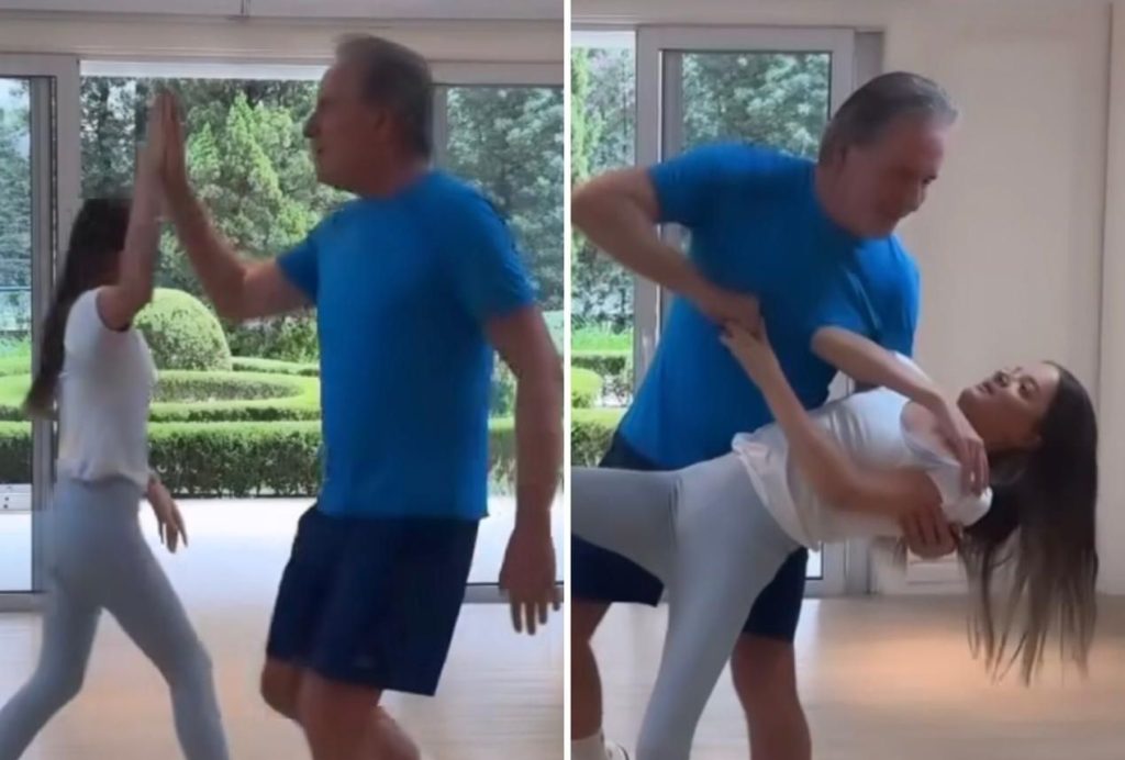 Rafaella Justus mostrou em suas redes sociais alguns passos de dança que tem ensaiado com o pai, Roberto Justus, para a festa de 15 anos da adolescente. “Lindos! Ensaiando a coreografia da festa de 15 anos da Rafa”, escreveu Ana Paula Siebert, mulher do empresário, ao compartilhar as imagens repostadas pela aniversariante.