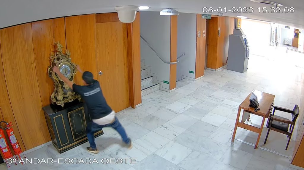 A destruição ocorreu quando Antônio Cláudio Alves Ferreira, um militante de 32 anos, arremessou o relógio ao chão. Em depoimento, o vândalo se disse consciente de que estava sendo filmado e alegou que sua ação foi motivada pela reação dos órgãos de segurança. Ele ficou foragido por 16 dias, até ser preso pela Polícia Federal em 23 de janeiro. Atualmente, cumpre 17 anos de prisão.
