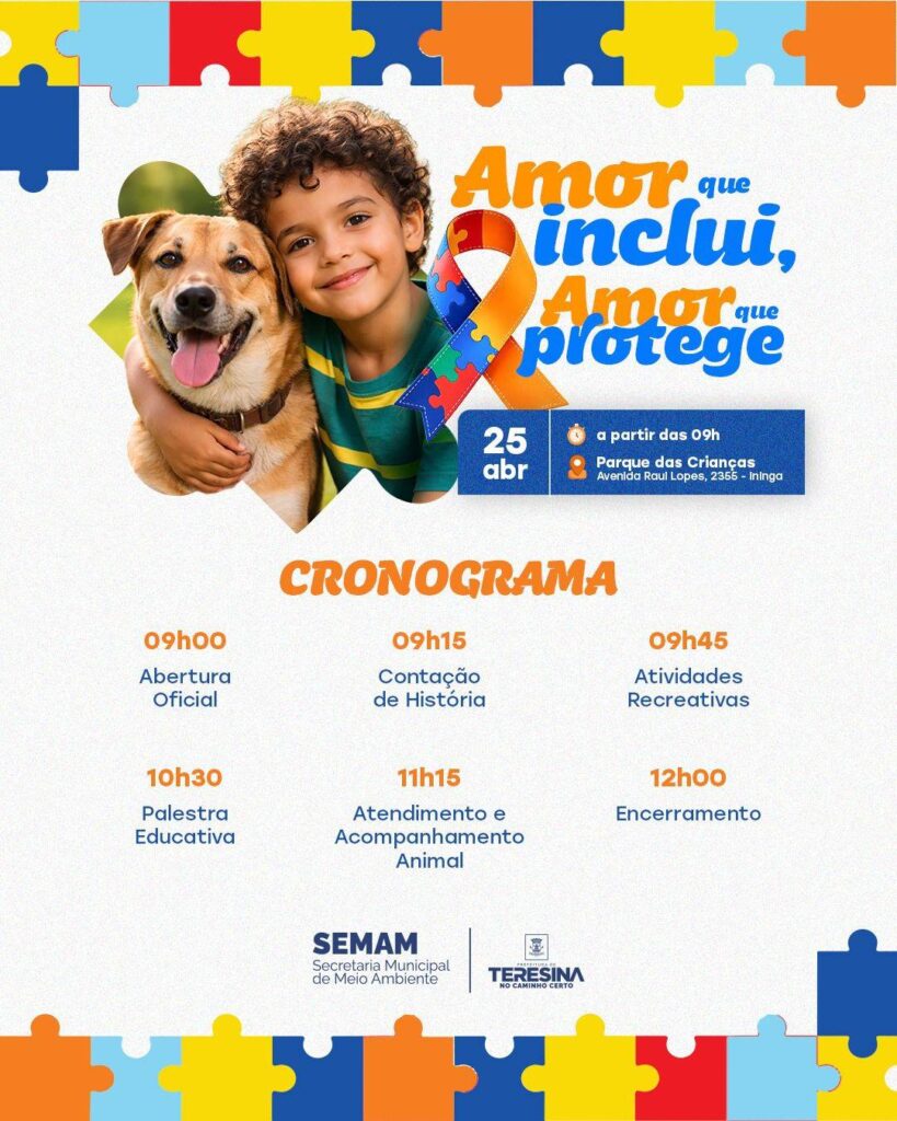 Com o tema “Amor que inclui, amor que protege”, a iniciativa tem como objetivo promover inclusão, empatia e respeito à vida em todas as suas formas. A ação é gratuita e aberta ao público, reunindo atividades educativas, recreativas e serviços voltados ao bem-estar animal.