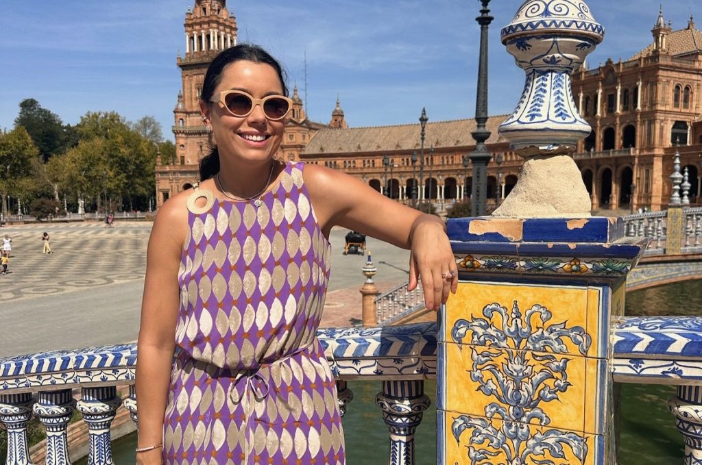 Daniela Filomeno nos arredores da Catedral de Sevilha, Patrimônio da Unesco e maior catedral gótica do mundo
