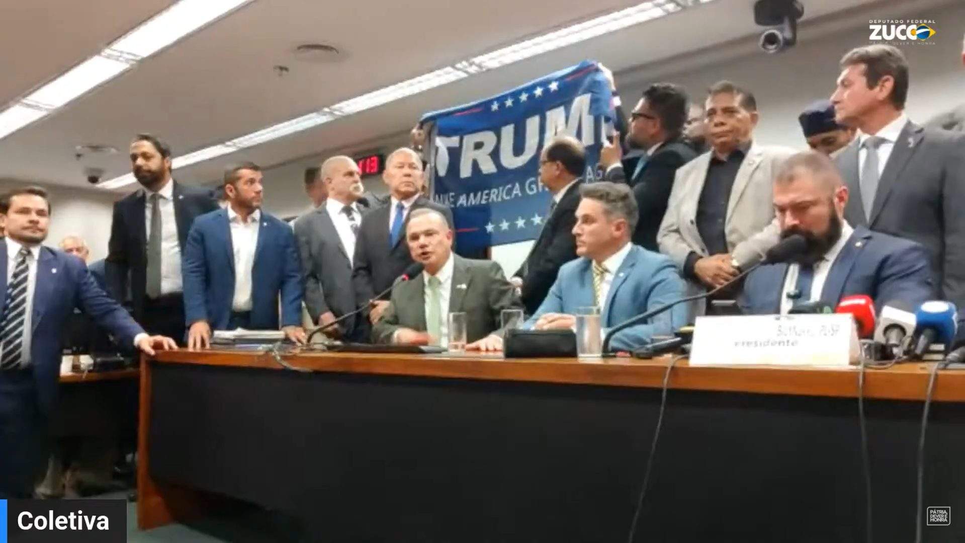 Durante uma coletiva de imprensa realizada nesta terça-feira, 22, um momento incomum ocorreu quando o deputado Delegado Caveira (PL-PA) exibiu uma bandeira com o…