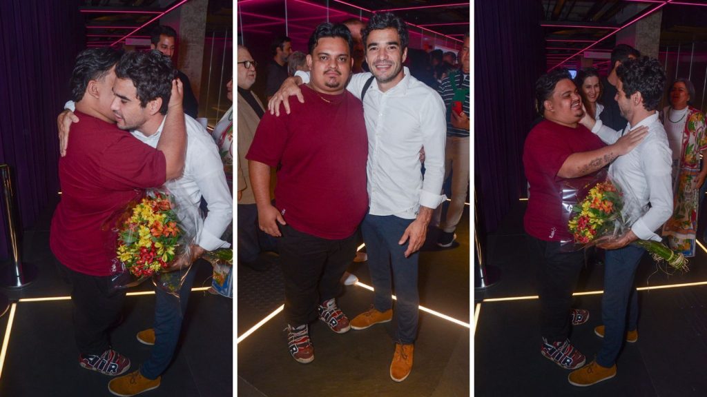 Caio Blat faz rara aparição com filho adotivo em estreia de espetáculo