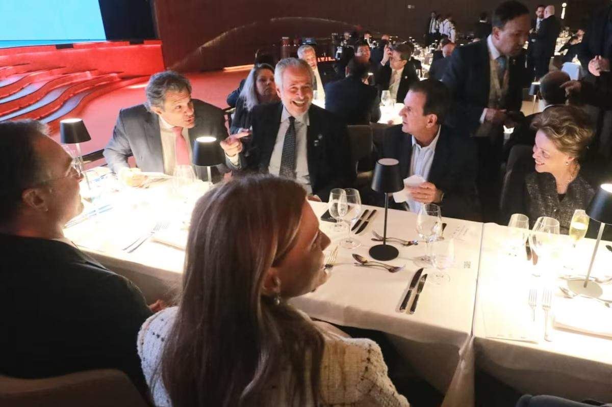 A presidente do Novo Banco de Desenvolvimento (NDB), Dilma Rousseff, e o presidente do Banco Central, Gabriel Galípolo, cantaram juntos durante o jantar do…