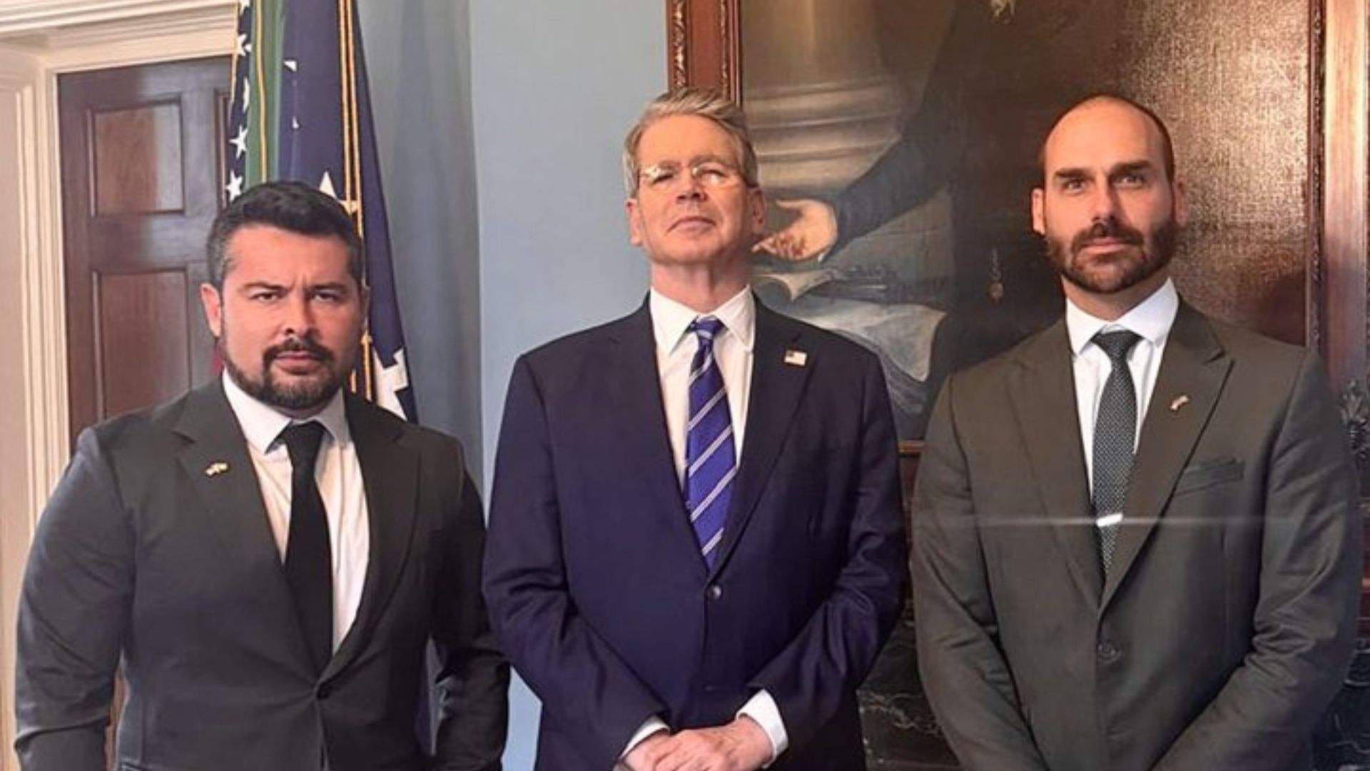 O deputado federal licenciado Eduardo Bolsonaro (PL-SP) publicou, em suas redes sociais, uma foto tirada durante encontro com Scott Bessent, secretário do Tesouro dos…