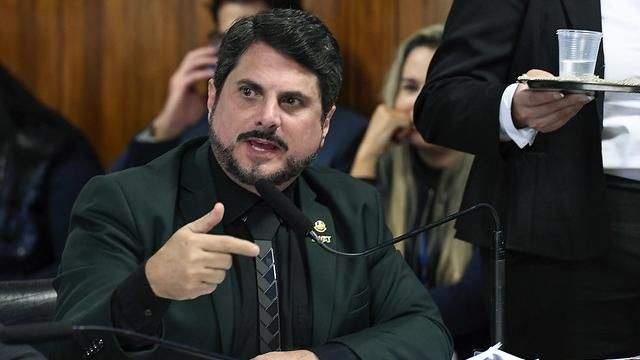 Marcos do Val exibe tornozeleira em protesto no Senado