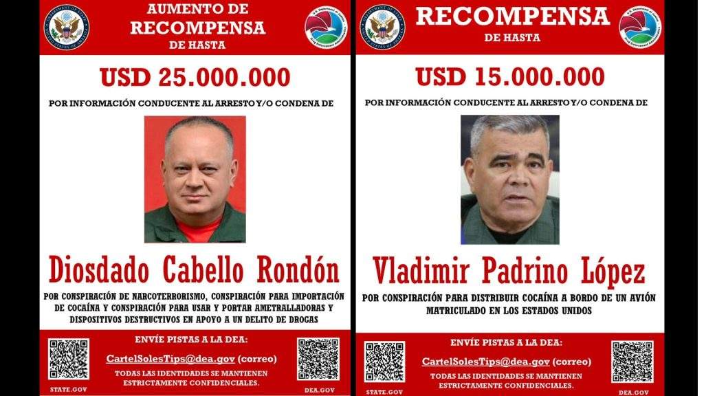 O governo dos EUA voltou a divulgar as recompensas por informações que levem às prisões de Diosdado Cabello Rondón e Vladimir Padrino López. O primeiro é…