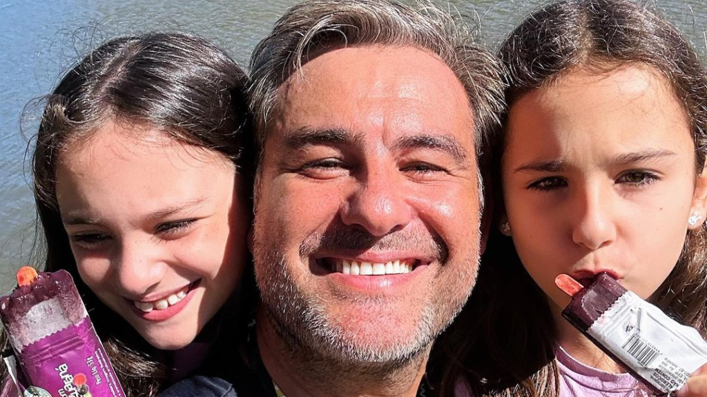 O ator Thierry Figueira, 46, publicou registros em suas redes sociais neste domingo (4) com suas filhas Rafaela e Nina, de 9 anos, em Miguel Pereira, cidade do Rio de Janeiro.