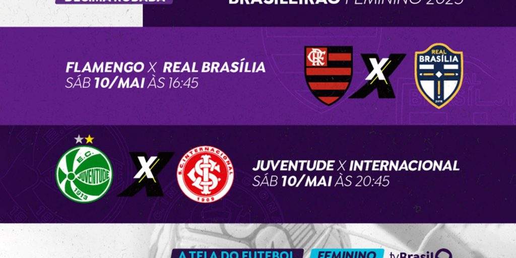A TV Brasil exibe neste sábado (10) dois confrontos válidos pela décima rodada do Campeonato Brasileiro de Futebol Feminino – Série A1. Às 16h45, Flamengo e Real Brasília se enfrentam no Rio de Janeiro e, mais tarde, às 20h45, Juventude e Internacional disputam o clássico gaúcho na cidade de Bento Gonçalves.