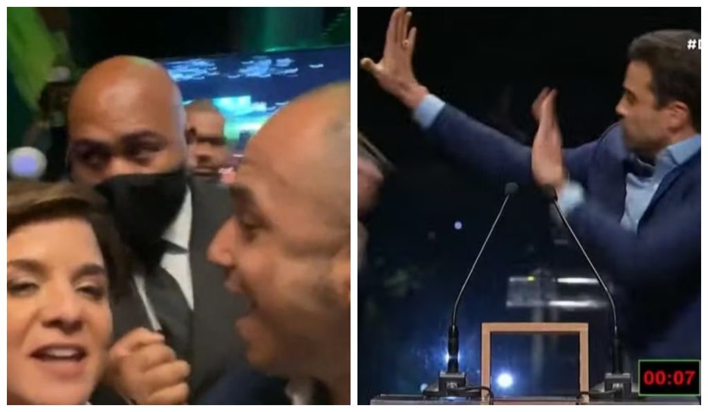 Não foi a primeira vez que a TV Cultura virou palco de briga durante debates eleitorais. Há dois anos, nos bastidores de um debate entre os candidatos ao governo de São Paulo, o deputado estadual Douglas Garcia (Republicanos) saiu da área reservada aos convidados e confrontou a jornalista Vera Magalhães, que circulava na área dos políticos. “Você é uma vergonha para o jornalismo”, disse o parlamentar, ao abordá-la, enquanto filmava a cena com um celular. Ela reagiu às provocações, e ambos começaram a discutir. Em meio ao bate-boca, o jornalista Leão Serva, mediador do debate, interveio de maneira abrupta: tomou o celular das mãos de Garcia, arremessou longe e advertiu o parlamentar: “Vá para a puta que te pariu, filho da puta”.