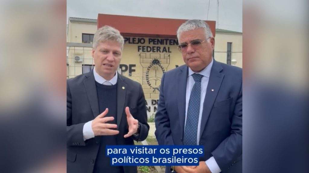 O deputado federal Marcel van Hattem (Novo-RS) e o senador Eduardo Girão (Novo-CE) realizaram uma visita ao complexo penitenciário de Ezeiza, em Buenos Aires, na Argentina, onde cinco brasileiros seguem presos por participarem dos protestos de 8 de janeiro de 2023.