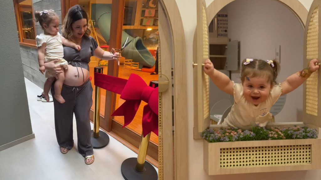 Viih Tube, 24, mostrou em suas redes sociais neste domingo (18) a inauguração da casa de bonecas gigante de sua filha, Lua, 1. A influenciadora aproveitou a comemoração de seu aniversário para cortar a faixa do cômodo dedicado aos brinquedos da primogênita.