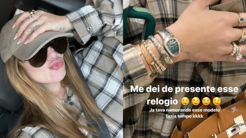 O artigo de luxo, também foi aprovado pelo cantor Zé Felipe, marido de Virginia. “Lindo, lindo, lindo”, menciona. Na sequência, a influenciadora fala que combinou com as suas pulseiras e exibe os acessórios e Zé comenta: “Gosta né?”.