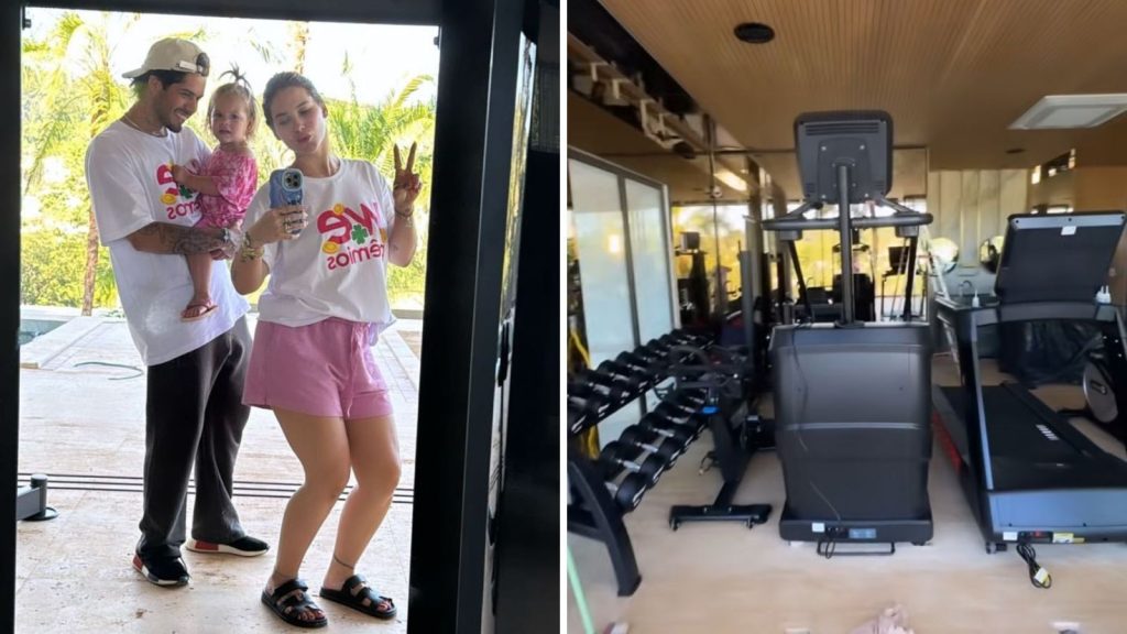 O espaço, compartilhado nos stories do Instagram nesta quarta-feira (12), é contemplado por uma academia com diversos equipamentos profissionais.