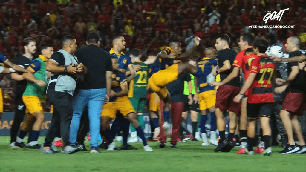O título foi decidido, mas o clima esquentou depois do apito final! Sport e Retrô trocaram mais do que cumprimentos…#PernambucanoNoGOAT pic.twitter.com/b0VIpM5054