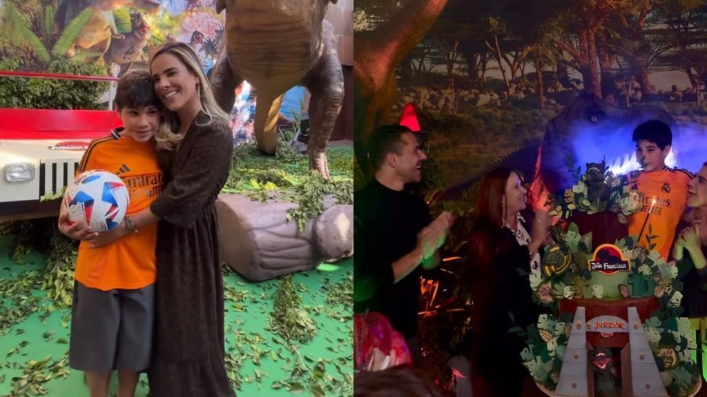 A mãe de Marcus Buaiz, Tânia, também compareceu ao evento, que teve como tema os filmes da saga “Jurassic Park”. Nas redes, Wanessa Camargo registrou detalhes da decoração, que incluiu bonecos gigantes de dinossauros.