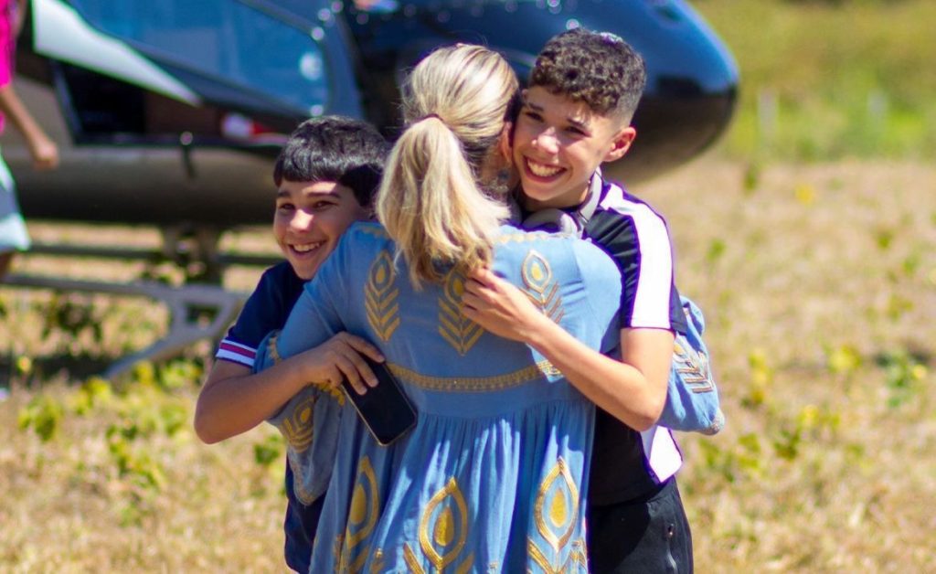 A cantora Wanessa Camargo, 41, usou as redes sociais nesta terça-feira (9) para mostrar que seus filhos chegaram de helicóptero na fazenda do avó, Zezé Di Camargo, 61. Os meninos João Marcus, 12, e João Francisco, 9, são fruto do relacionamento de Wanessa com ex-marido Marcus Buaiz, 44.