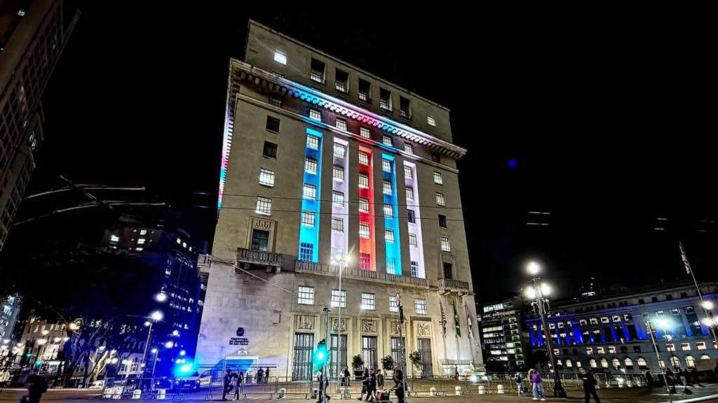 De acordo com a publicação, a iluminação na fachada da prefeitura é uma homenagem ao povo francês e aos “laços históricos de amizade entre nossos países”.